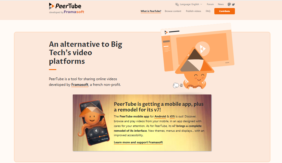 Peertube is a decentralized video hosting platform. It allows users to host their video servers while interacting with others on the platform. It provides a censorship-resistant alternative to platforms like YouTube.