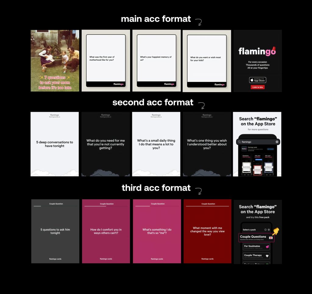 - Find a Winning Format: Flamingo Cards nailed it with their slideshow format on TikTok and adapted it for Reels.