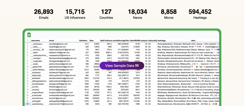 When your goal is to gather numerous TikTok emails for influencer outreach, the Find Me Creators Database emerges as a premier tool. This database simplifies the process of finding social media account emails in large quantities and includes a feature for easy export into outreach tools.