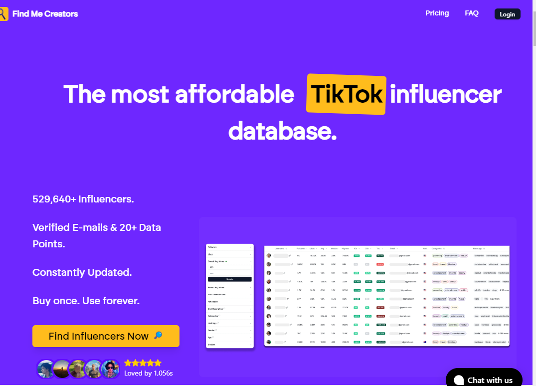 - 2024 Updated Influencer database: FindMeCreators
