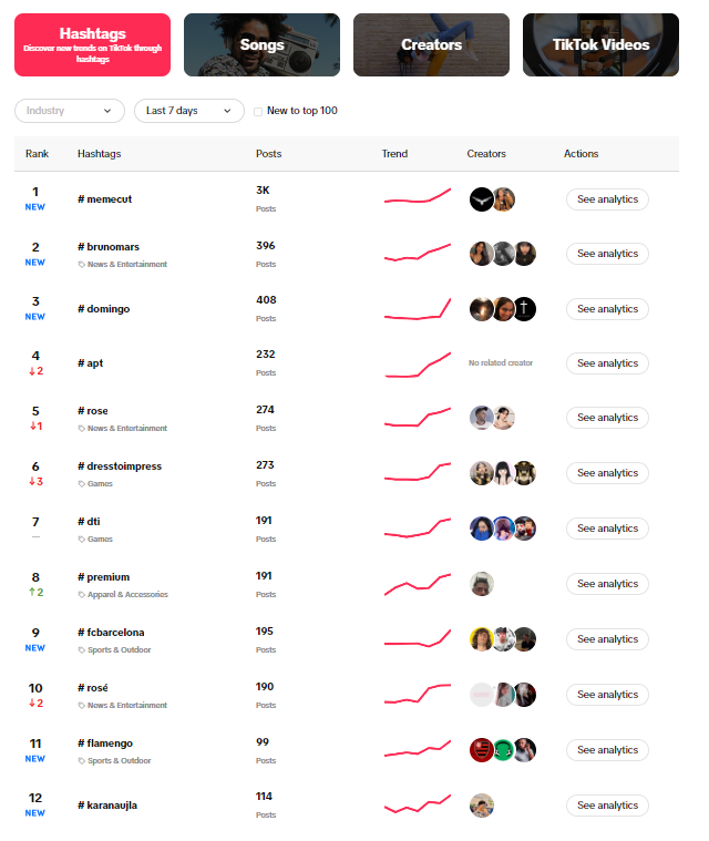 TikTok’s Creative Center is a hub for insights on trending content.