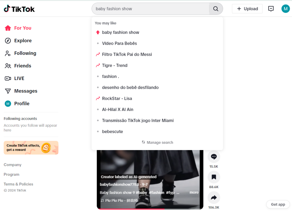 - Keyword Searches: Input phrases like “viral challenges,” “trending dances,” or “popular effects” to uncover current trends.