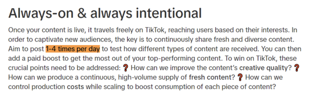 Remember, this guideline is merely a starting point. It’s essential to experiment with different frequencies as recommended by TikTok.