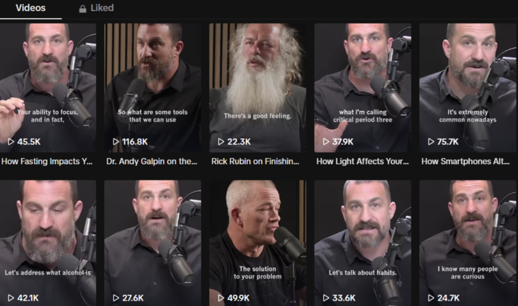 For instance, renowned neuroscientist Andrew Huberman’s TikTok postings are infrequent but garner tens of thousands of views: