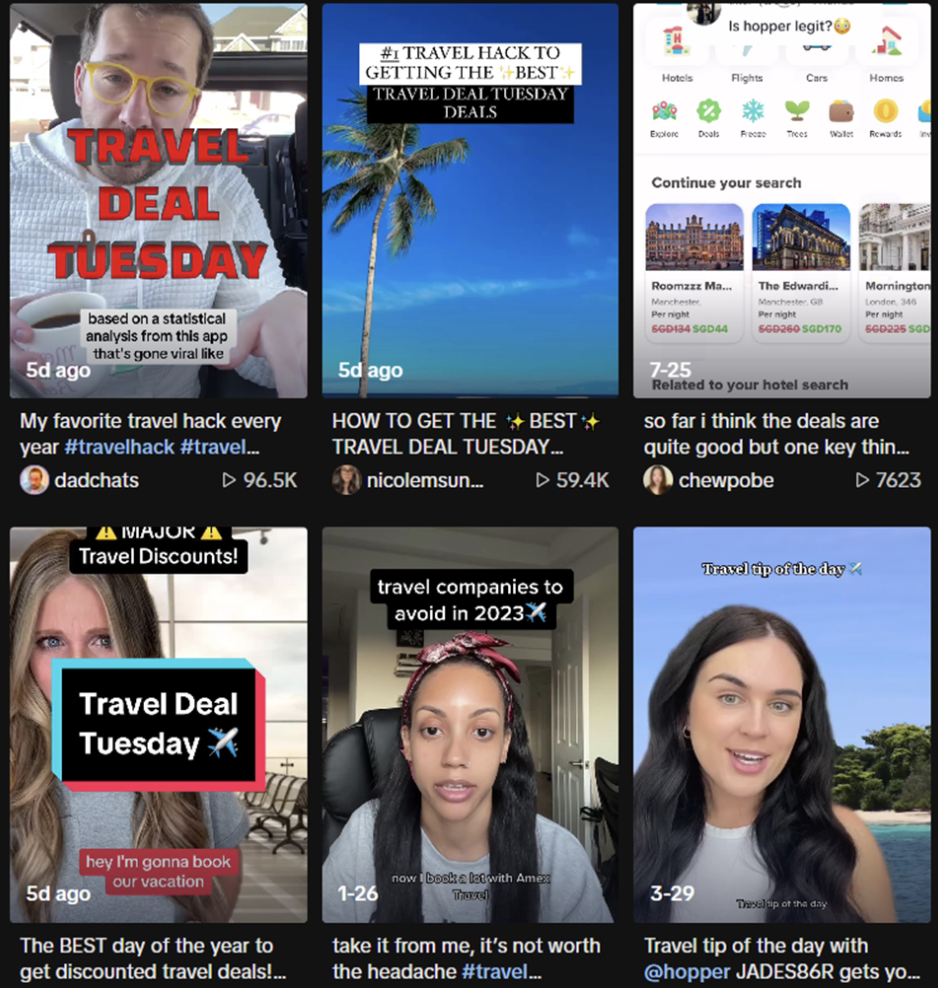 - Influencer Marketing: Collaborating with influencers from the Find Me Creators Database can introduce your content to a wider audience. Influencers often have a keen understanding of their followers’ preferences, benefiting your brand. For instance, Hopper, a travel app, keeps its TikTok content vibrant through influencer collaborations: