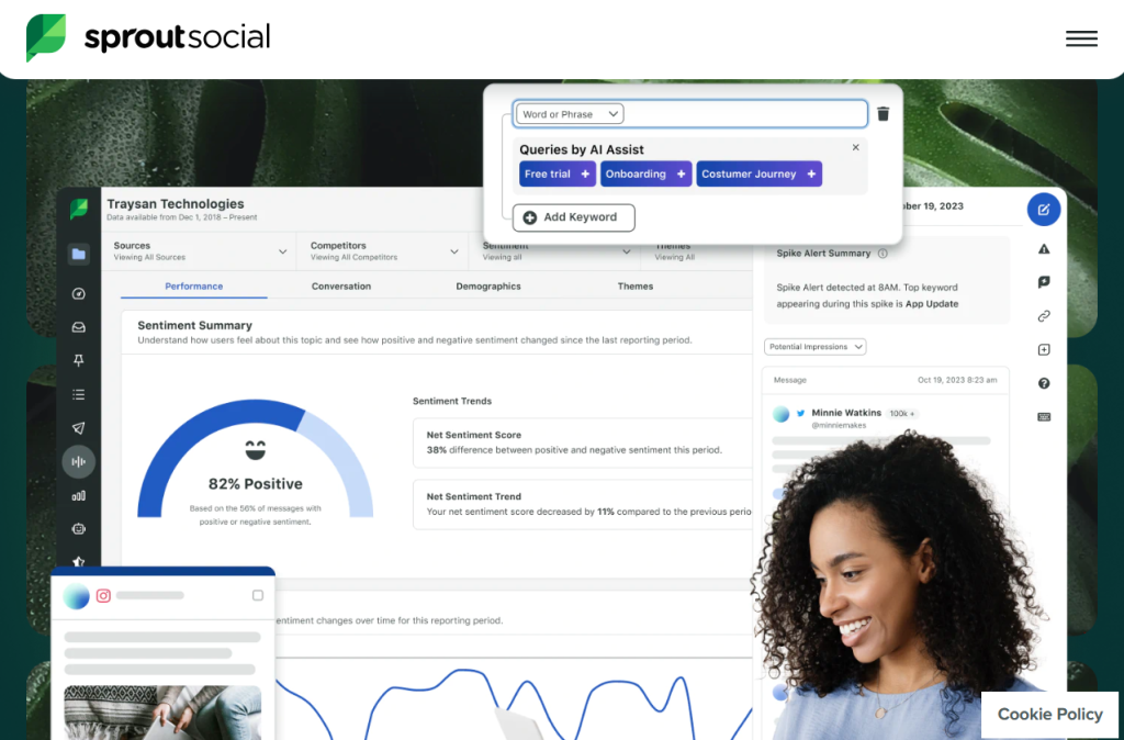 - Comprehensive reporting: Sprout Social offers in-depth analytics on post performance, audience engagement, and overall reach, allowing you to track the ROI of your social media activities.