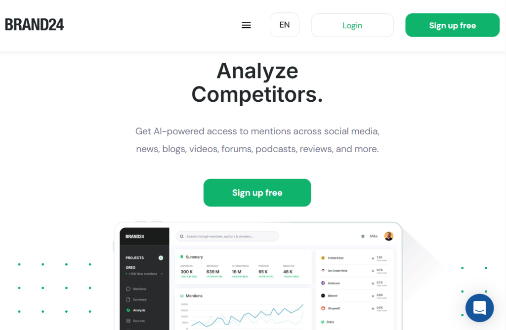 Brand24 is perfect for small businesses that need a more comprehensive web monitoring tool. It helps you track not only social media mentions but also online discussions and news stories related to your brand. The real-time alerts and sentiment analysis make it easy to stay on top of any issues or opportunities for engagement.