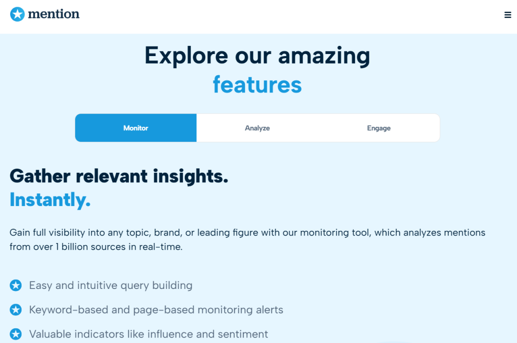 - Real-time monitoring: Mention provides real-time monitoring across a wide range of platforms, including social media, blogs, and online forums.